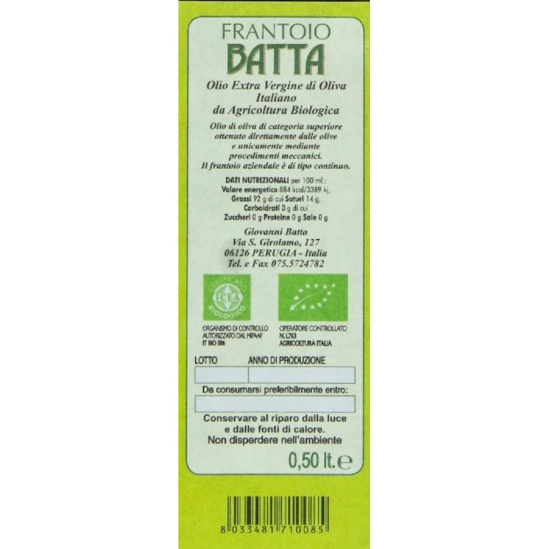 The Extra Virgin Olive Oil Organic Frantoio Batta is an intense golden yellow extra virgin olive oil with green tones, clear; perfect on lentil appetizers, baked porcini mushrooms, spinach salads, grilled radicchio, vegetable soups, pasta dishes with meat sauce, fish au gratin.