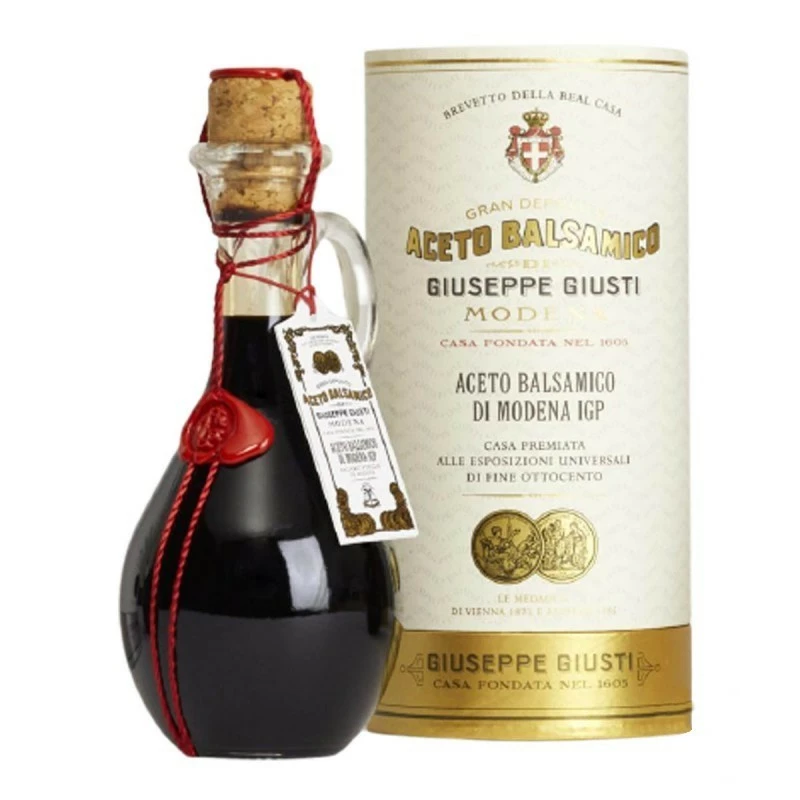 A classic for the Giusti family, the Balsamic Vinegar of Modena IGP 2 Gold Medal Anforina Giusti is a greatly versatile balsamic, used fresh or heated. Of a good density and optimal balance between the sweet and sour, it is characterized by overtones of mature fruits, licorice and black pepper.