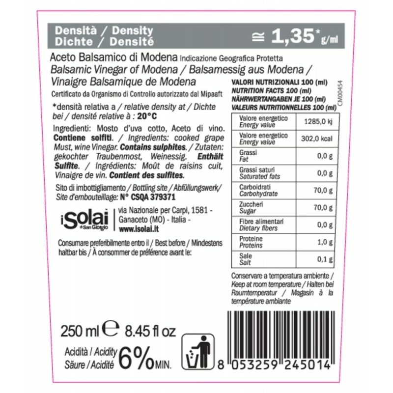 The Balsamic Vinegar of Modena PGI Platinum Seal I Solai is produced with grapes of seven specific varieties: Lambrusco, Sangiovese, Trebbiano, Albana, Ancellotta Fortana and Montuni. Everyone brings different and distinctive flavor notes. To These grapes is carefully added an aged wine vinegar to allow the balance between sweet and sour, typical of balsamic vinegar of Modena. The quality varies depending on the selected raw materials. The density is derived from the quantity of grape must used. Finally, the aging in oak barrels complete the production process allowing vinegars to release inimitable flavours.
