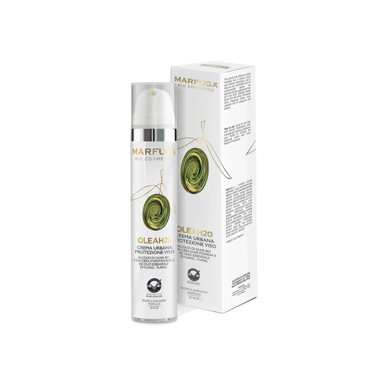 The Protection Cream Urban Face Oleah20 by Marfuga is produced with organic olive oil with vitamin E beeswax and Ylang – Ylang essential oil. Like the whole line with extra virgin olive oil, this product is indicated for those with dry skin problems and who want to hydrate it effectively. The BIO extra virgin olive oil, beeswax, vegetable glycerin, sesame oil contribute to the action. The fragrance comes from the precious Ylang-Ylang flower, with flowery and warm notes.