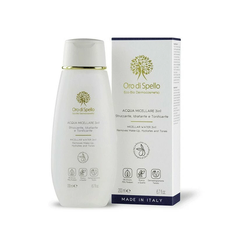 The Micellar water 3 in 1 of Oro di Spello is ideal for all skin types, even for the most sensitive and prone to redness. It is a delicate multifunctional product able to cleanse, remove makeup and moisturize the skin in a single gesture. Its mild and neutral formula soothes redness and performs a detoxifying action without altering the pH of the skin.