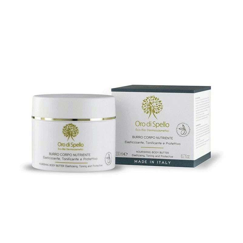 The Nourishing Body Butter of Oro di Spello is particularly suitable for dry and sensitive skin. It is ideal for elasticizing, toning and protecting the skin. Its formula, enriched with organic oils such as extra virgin olive oil, grapeseed oil and sweet almond oil, makes the product ideal for nourishing, protecting and elasticizing the skin. Organic shea butter and cocoa butter give immediate hydration. The organic honey extract increases the nourishing power of the product, while the protective plant extracts restore new tone and compactness to the epidermis.