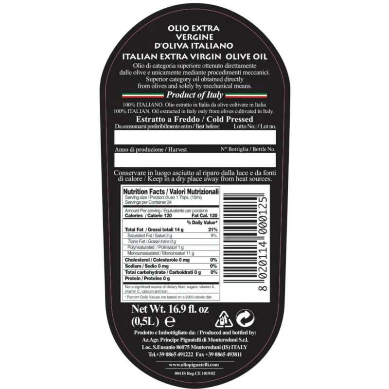 The Extra virgin olive oil Classic can Pignatelli is a blend made from native varieties carefully selected. The collection, made with hand-picked and partly with mechanical shaking, preserves the integrity of the olives. that are cold pressed within 12 hours of collection, with continuous cycle oil mill and at a temperature lower than 27 ° C, to ensure very high standards of quality.
